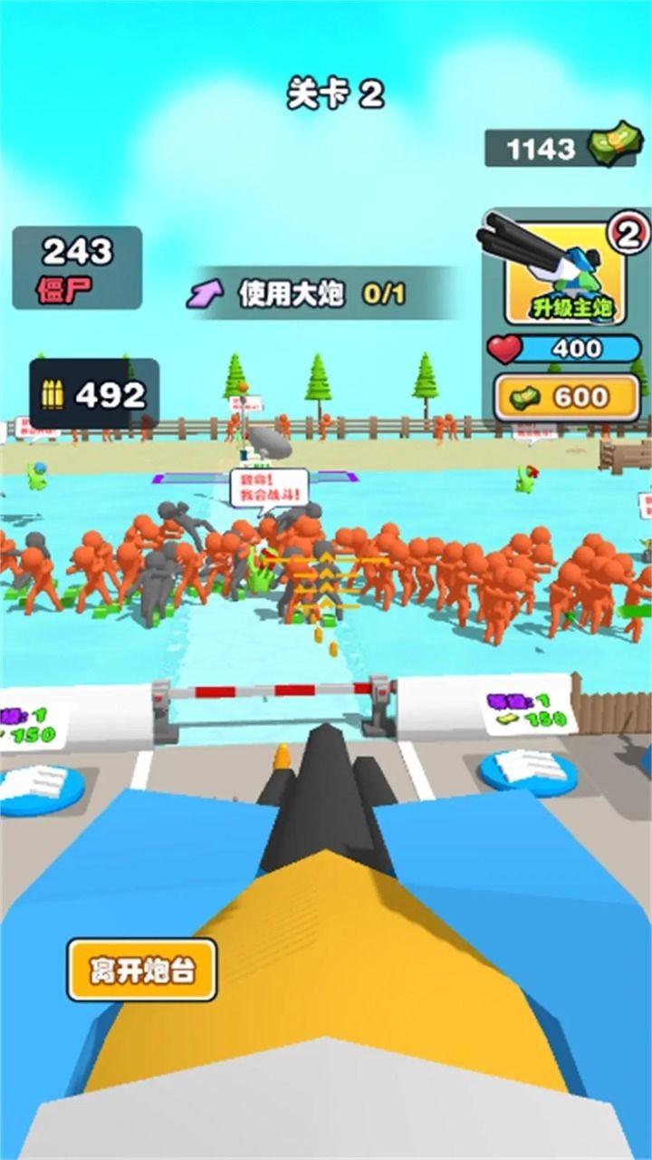 1、游戏需要玩家出城击败僵尸获得钱币,解救人质帮助自己击败僵尸和升级炮台;