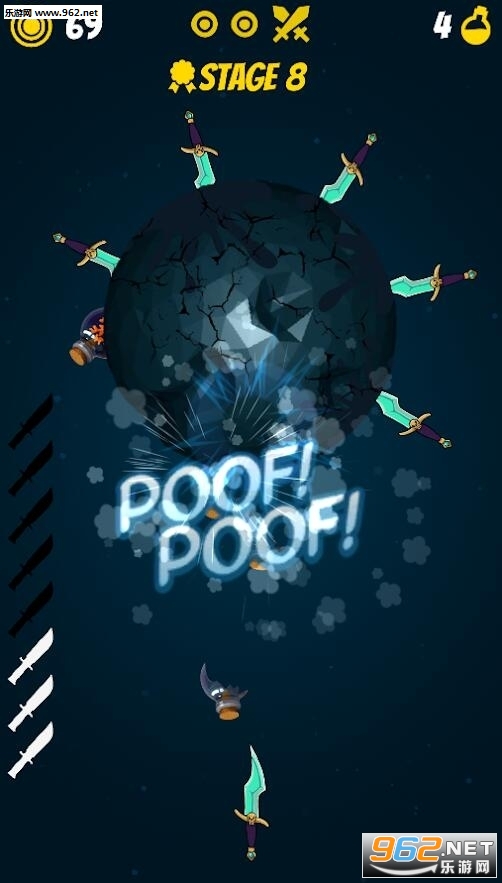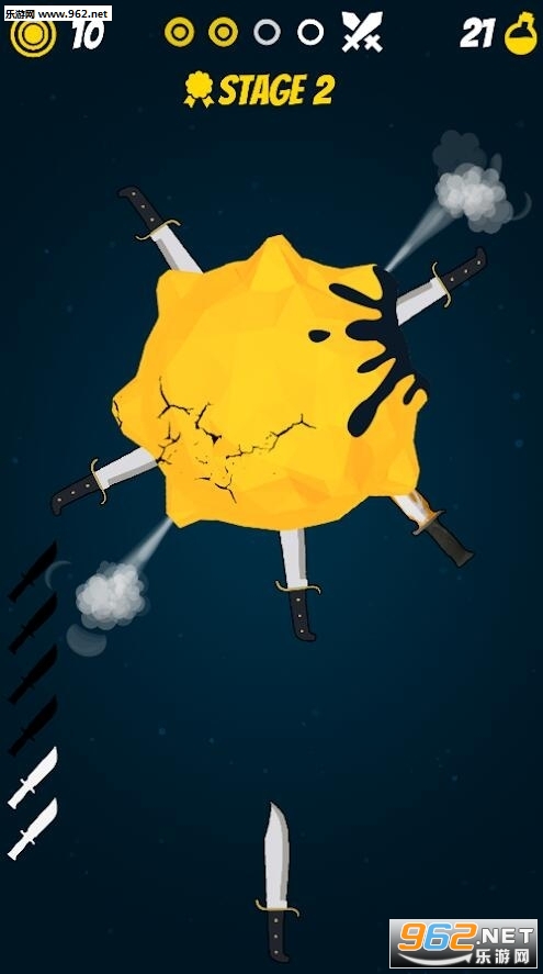 击毁行星游戏有点类似于之前的飞刀游戏,转动的星球,你要不断的发射出手中的飞刀,足够数量的飞刀射中之后你就可以击碎这个星球了。一起来看看这个游戏吧!
