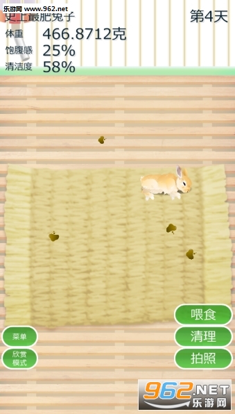 本作是一款简单的放置型兔子养成游戏。养育方法非常简单,至少每4天给它喂食1次,每周清理1次笼子就行了,然后看着它一点点长大。