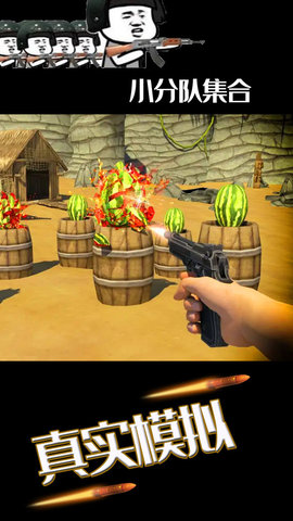水果缤纷消消消-模拟西瓜射击是一款非常适合在炎炎夏日玩的游戏,它结合了水果与射击的特色,场景设计极具特色,看起来很是清爽美观,游戏真实的模拟了吃鸡的战场环境,给予玩家身临其境的射击体验,玩家在游戏中可以使用各式枪械来射击西瓜,过程中会有其他的物品干扰我们,只需要稍加躲避就可以获得胜利,但是不要射击错了哦!