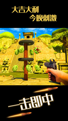在规定的时间内多打些西瓜,各种不同的射击水平挑战游戏; 精致的绘画风格,灵活的射击体验,拿起手枪,射西瓜!