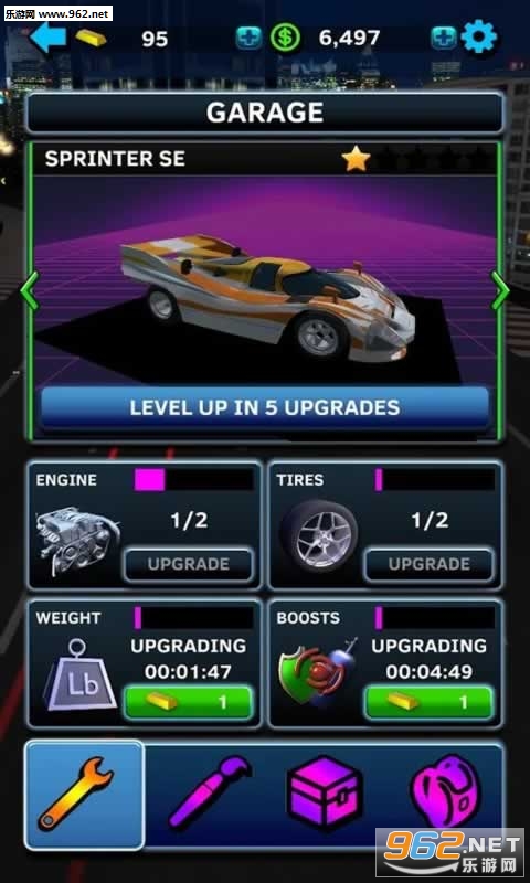 1、在公路上躲避车辆完全漂移,解锁并升级你的跑车;