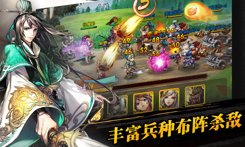 ·每个武将英雄都拥有形象各异的、独立的呆萌Q版战斗形象,通过独特的2D骨骼动画技术,加之炫酷的技能特效,一招一式都会带给你最逼真、酣畅淋漓的即时战斗爽快感。
