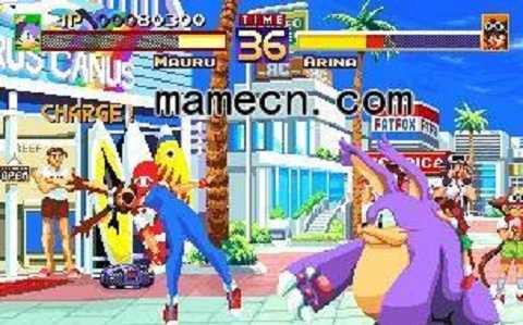 2、以NEOGEO版为标准,在arcade模式下,玩家可享受单人游戏和乱入对战的两种乐趣。
