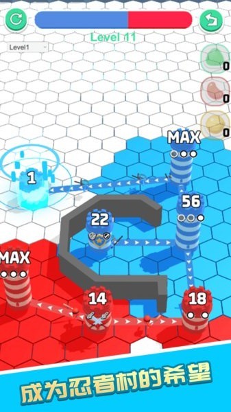 3、合理的安排忍者们的进攻路线,将游戏其他忍者村的堡垒统统击破占领来获得游戏的最终胜利!