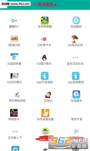离境魔盒是一款功能强大的手机工具箱软件,小巧轻便,支持K歌刷试听、云盘链接修复、球球刷龙蛋、快手刷人气,qq辅助等多种实用功能,完全免费,打开手机APP就能轻松使用。