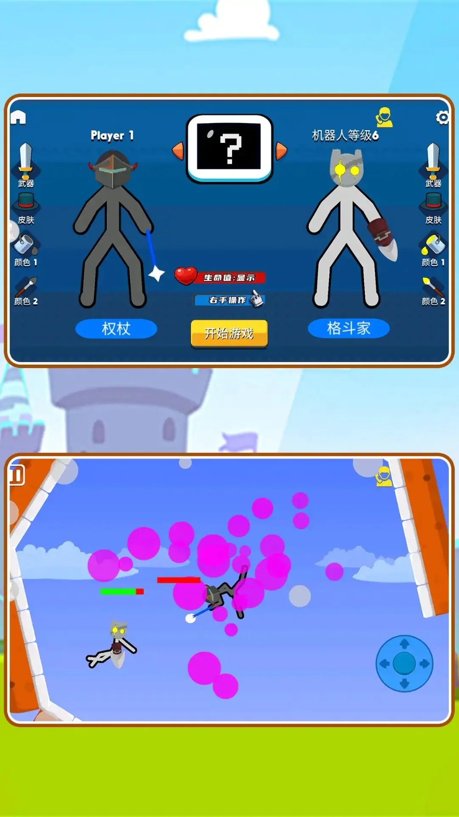 4、角色成长系统:玩家可以通过战斗获得经验值,提升火柴人的能力。自定义角色技能树,选择适合自己玩法风格的技能。