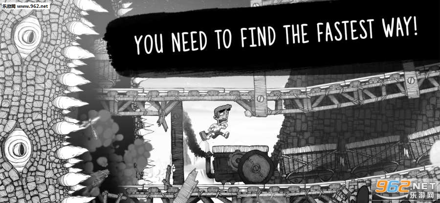 一款剧情非常丰富的黑白风跑酷休闲游戏,游戏为玩家设计了不同的逃生线路,玩家可以自己选择,后面有恶魔在追赶前面还有惊险的障碍,还是挺需要操作的。