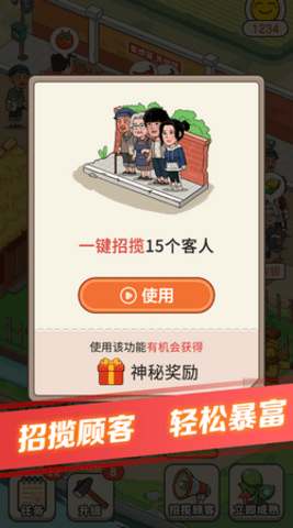 3、赚取金钱: 顾客购买后玩家将获得一定金钱,提升收入。