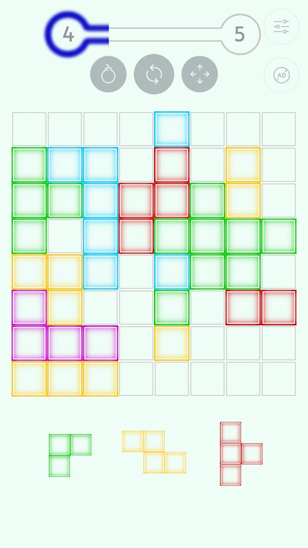 1、核心玩法是旋转、移动和拼接不同方块,形成一行完整的方块以消除方块并得分。