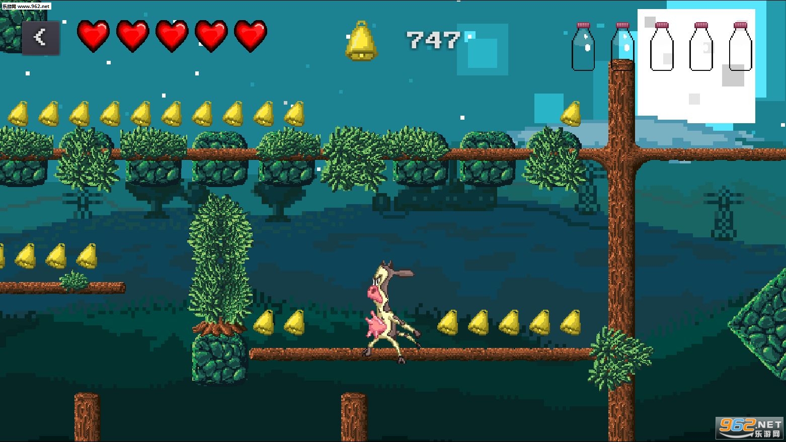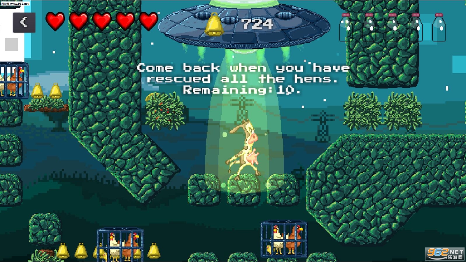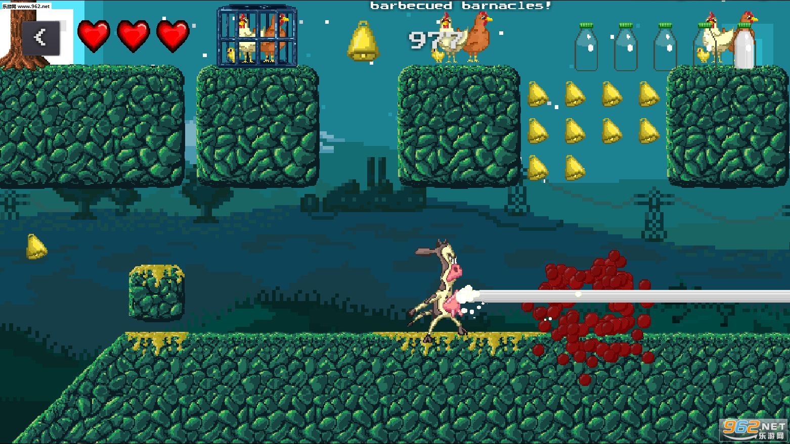 《复仇之牛安卓版》是一款十分好玩有趣的像素风动作冒险闯关类游戏,在游戏中玩家将扮演一头被外星人改造过的奶牛,你从外星人的飞碟上逃出来了,你需要尽可能多的收集铃铛,并且用你的奶子喷射奶水去攻击敌人,要注意你的奶水是有限的,要节约使用哦。喜欢这款游戏的小伙伴儿赶快来下载吧!