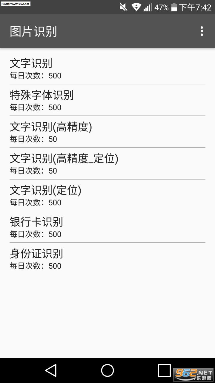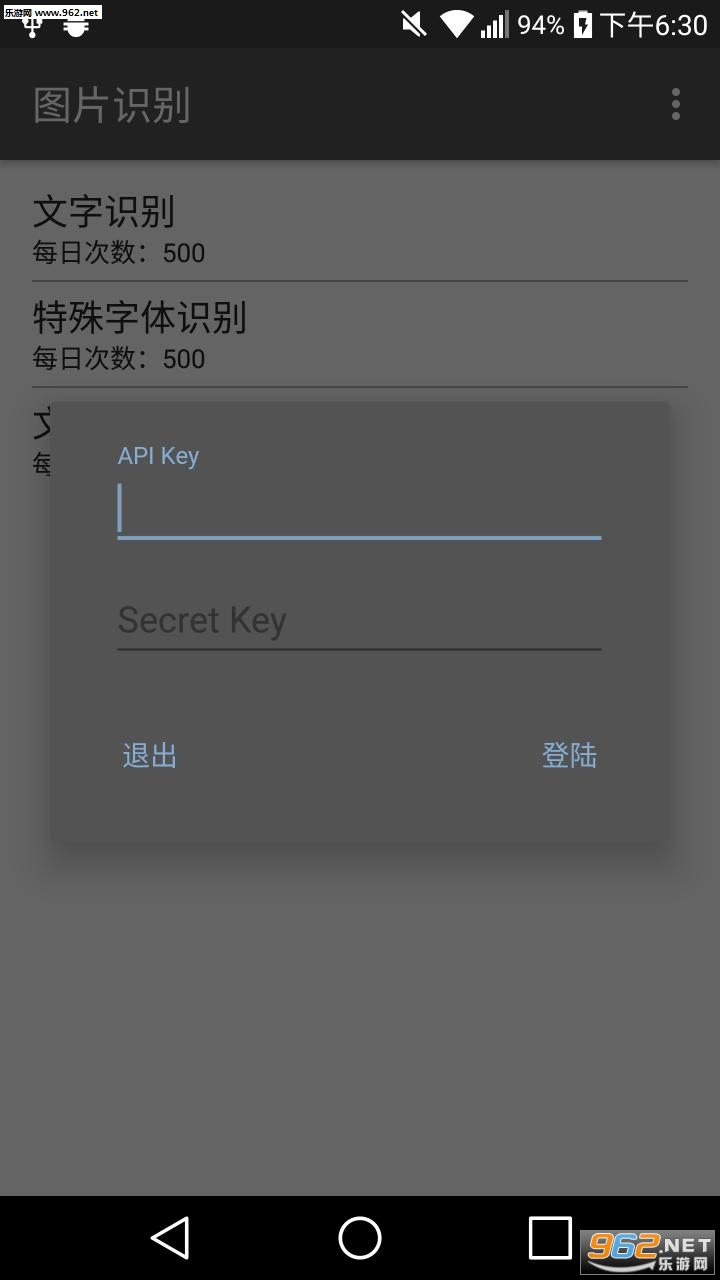用百度OCR,但本app不自带key,需要使用者使用自己的百度账号获取API Key,Secret Key(每个账号每天每个类别有500次,最少50次的识别机会)