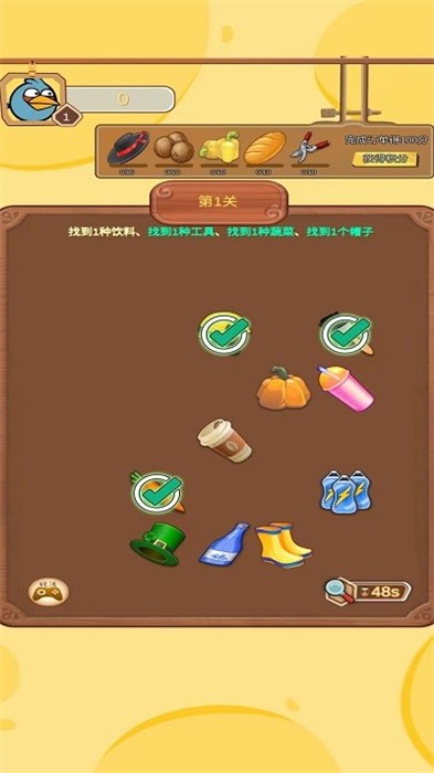3、三个相同的物品被点击之后即可实现收集,收集完毕后会获得奖励品;