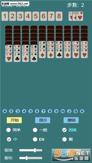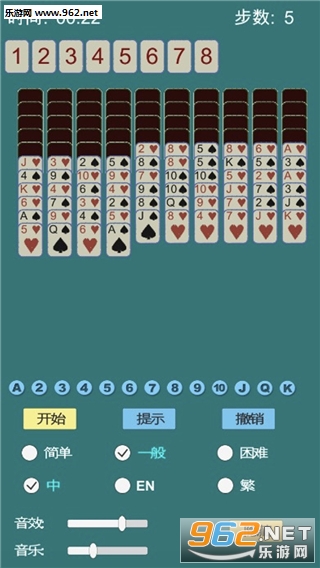 游戏目标:在四个回收单元中各创建一组牌,每组13张,花色相同,且必须按从小到大,即从A到K的顺序排列。
