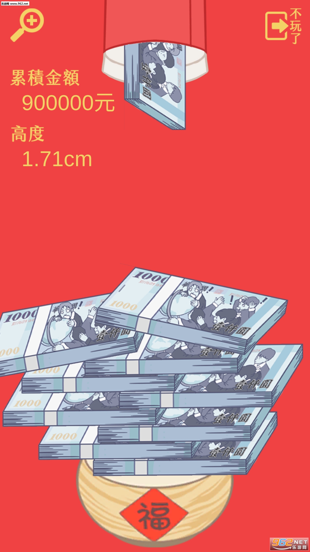 知道大把钞票叠起来长什么样子吗?知道一百万、一千万叠起来有多高吗?想拥有大把钞票过过乾瘾吗?快来试试台币101叠叠乐,挑战把钞票叠到最高!