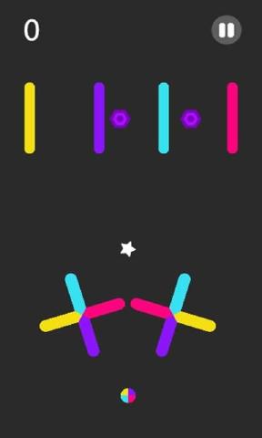 小球只能通过颜色相同的障碍,一旦撞上颜色不同的障碍游戏就将失败。