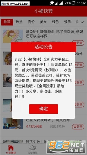 快赚宝旗下小猪快转火爆上线!随时随地打开小猪快转,将文章分享到你的群或者朋友圈,有人阅读你就可以获得收益!