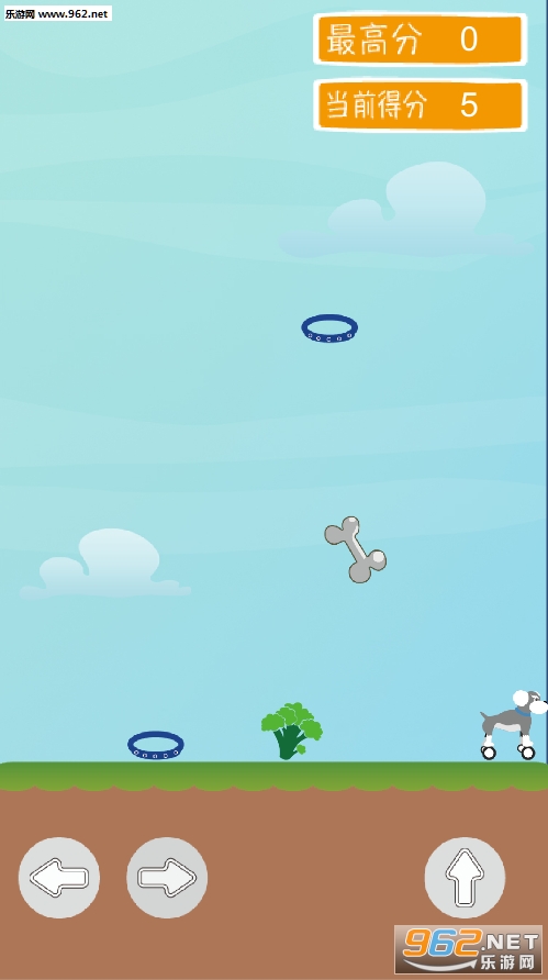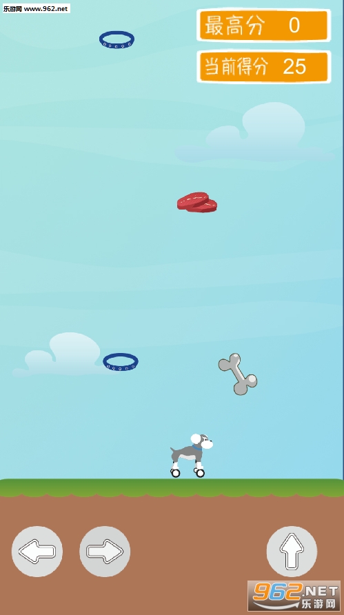 非常好玩的一款小的休闲游戏,游戏中玩家只需要控制你的狗狗左右移动,躲避从天而降的项圈,吃掉更多的食物即可,操作简单,非常考验你的反应能力,适合打发时间!