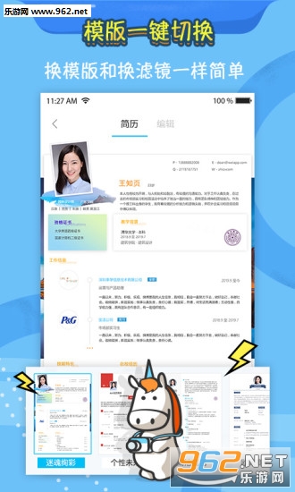 一款手机简历模板应用,软件拥有超多高颜值简历模板,数据云端同步,还拥有真实校友社交网络,可以帮助用户更好的找工作,需要的朋友欢迎下载使用。