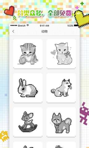 《格子画手机游戏》是一款非常有意思的像素涂鸦手游,能够让不会画画的人也尽情展现自己的美术天分。游戏的玩法非常简单,选择自己喜欢的颜色在画板上对图形进行填充就可以了。画面非常丰富,不管是二次元插图还是各种萌萌哒小动物都应有尽有,感兴趣的话就快来下载吧!