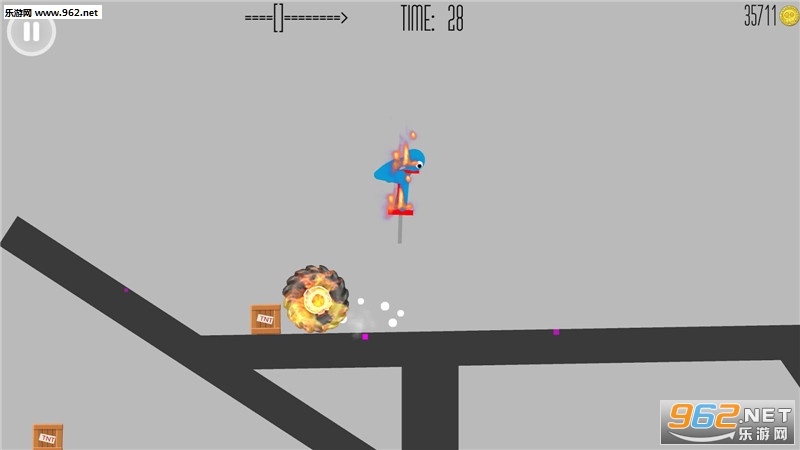 火柴人波戈是用弹簧,可以让你从地面推离和弹跳火柴了这样一件很酷的事情。它也被称为蝈蝈模拟器,需要控制你的火柴人的斜率在正确的方向跳跃,避免板条箱TNT炸药,如果你不想破坏身体,把你的火柴人飞行。