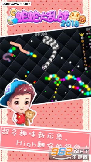 《蛇蛇大乱战2026》Q版的游戏画面,但也仅是游戏背景,而不同颜色的小蛇也正好绘制了一条亮丽的风景线。玩蛇蛇的同时还可以向心意的妹子表白,还有更多的造型在等着你去创造,还在等什么呢?快点加入我们吧。