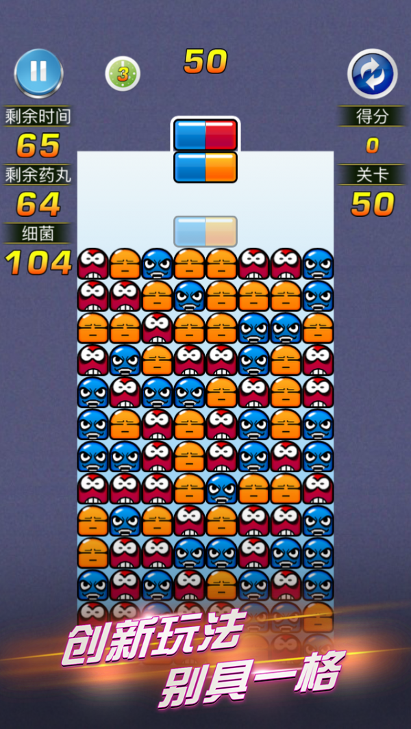 4、需要将四个颜色相同的药丸组合在一起进行消除,这种策略性的消除玩法增加了游戏的深度。