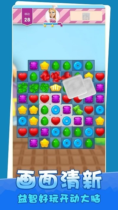 4、置换消除,很简单好玩有趣的置换,多个水果指尖很好的点击控制消除。