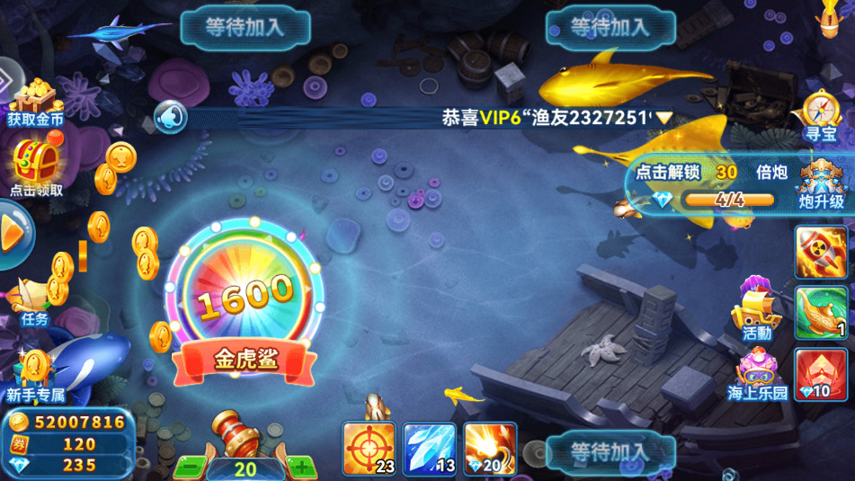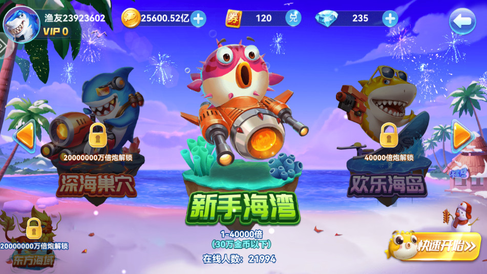 非常好玩的捕鱼竞技类的游戏,超多副本等你来挑战,玩家在游戏中可以自己进行捕鱼对战,玩起来很过瘾,高倍率炮台,奖励超丰厚,随着游戏进程的加深能够解锁各种不同的捕鱼玩法模式,快来下载吧!