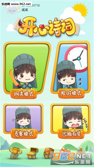 “万卷诗词在手,开心与你同行” ,“开心诗词”以海量的题库,多样性的出题组合,满足各层次诗词爱好者的全方位需求,其运作以趣味性为主,由四大主题模块构成: