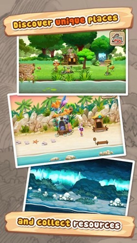 除了在幸福街生活之外,还可以到小岛的其他地方去探索,不同的地点会开放不同的生产技能,有制作点心,饲养牛羊之类的。另外很多生活资源也要通过探索来收集,比如石材和木头这类。