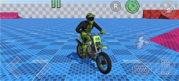 2、玩家可以在这个场景逼真,道具丰富的游乐场内自由展示你的摩托车特技,尝试各种驾驶技巧;