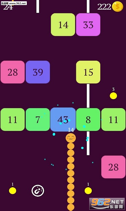 《蛇与块手游安卓版》是一款十分好玩有趣的方块风休闲益智类游戏,游戏结合了贪吃蛇与打砖块的玩法,玩家需要控制一条小球不断吞吃地图中的小颗粒,你的头顶上会出现一个数字,代表你现在的长度,你可以打破数字比你小的砖块,砖块打破后会变成一堆小颗粒,你可以吃掉他们使自己变长变大。感兴趣的小伙伴儿赶快来下载吧!