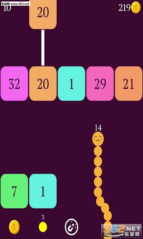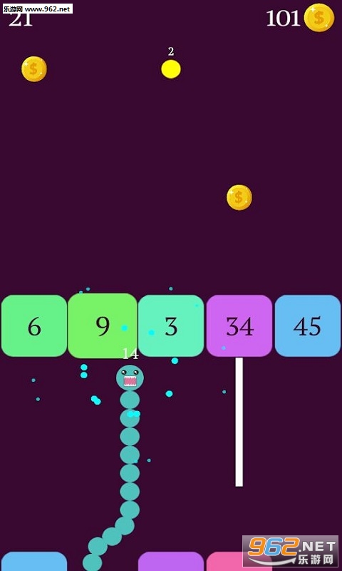 滑动手指来引导蛇,打破砖块。