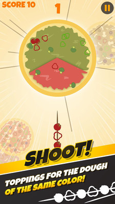 用串串射击披萨,这个设定可以说是非常有创意了。颜色相同的要进行匹配,要把握好时机哦。