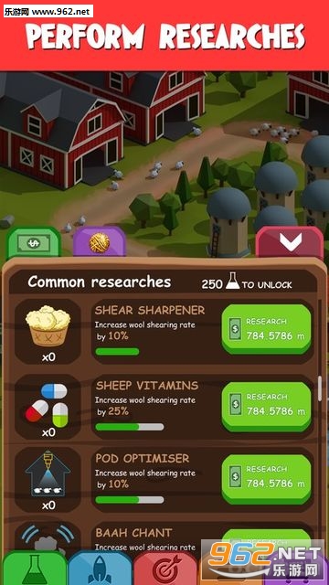 游戏一开始出生在一块绿意盎然的草原上,游戏需要你来经营一个绵羊牧场,你可以给绵羊剪毛、繁殖、养育等工作,(容小编吐槽一下:一开始的任务是建造一个剪毛站要200金币,可是你身上居然只有50金币!逼我们用水晶购买金币!容我们从嘴里发出一些不和谐的字眼。)。
