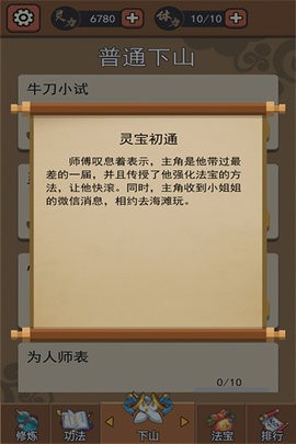 4、各种神奇的修行功法等待你的选择探索,并通过提升你的修道境界顺利的完成关卡挑战