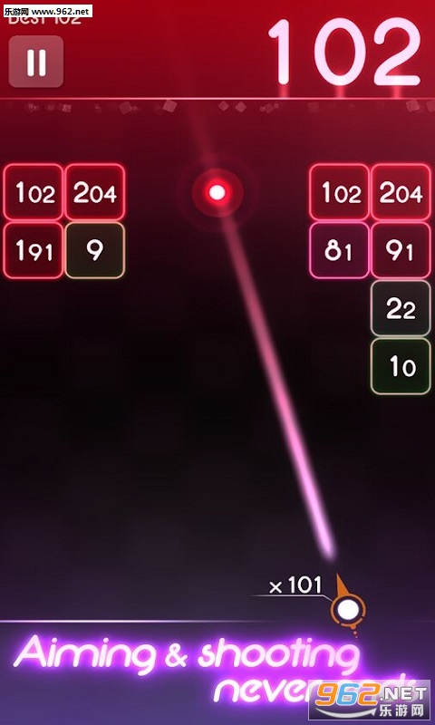 保持瞄准,点击改变球的方向,松开手指进行拍摄,并打破所有的砖块。