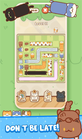 猫咪堵塞是一款有点烧脑的益智消除小游戏,玩家是一群猫咪的引导者,日常的工作是带领不同品种的猫咪进食,让大家能公平的吃饱饭。有时候调皮的猫咪会挡在路上,你就要把它们抱开。游戏操作非常简单,大多数时候是连连看+排序的模式,对于喜欢猫咪的朋友而言,还是非常有趣的。