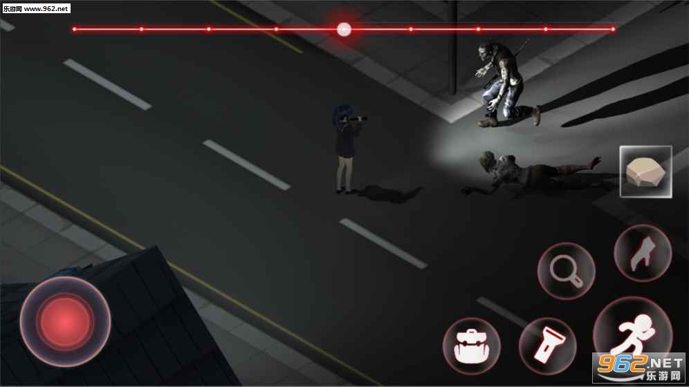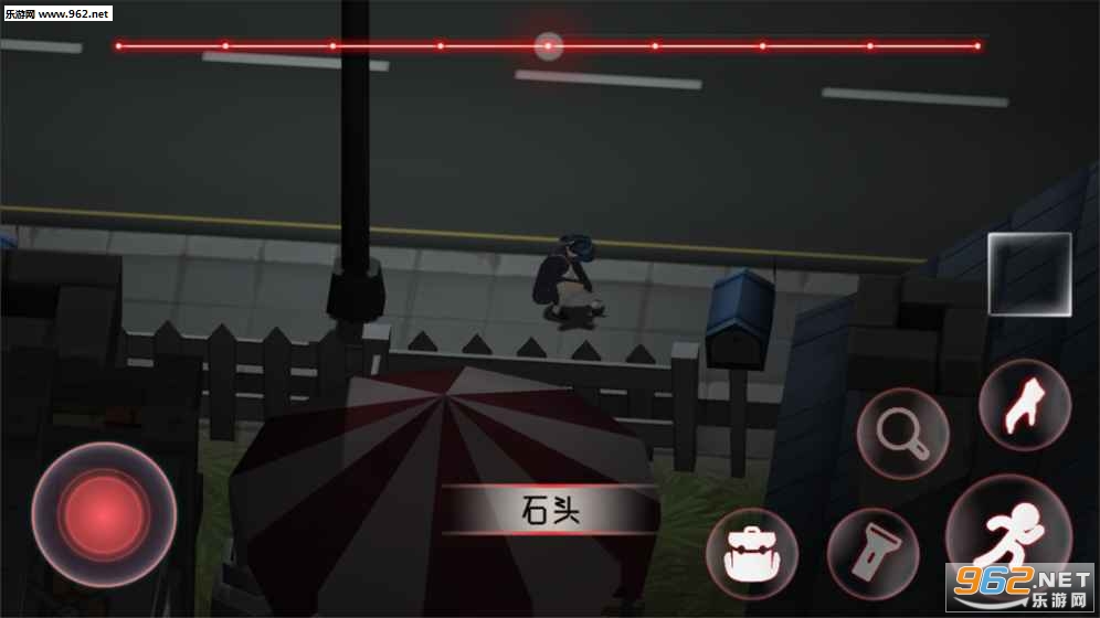 室外场景中可以拾取道具“石头”(靠近时会有提示),点击道具栏石头投掷石头,怪物会被吸引(灵活运用石头助你逃脱死局);