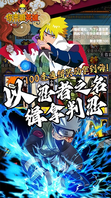 你来嘛英雄影级刷充爆打万金是一款非常好玩的二次元格斗卡牌游戏,游戏根据热门动漫火影忍者改编而成,有各种各样的火影角色等你收集,每个角色技能招式都是完美还原动漫,给玩家带来最优质的使用体验,超多福利活动登入即可领取,感兴趣的小伙伴快来下载吧。