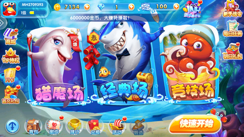 登录就送海量金币,3日好礼、鸿运抽奖、深海寻宝,多重福利领不停!
