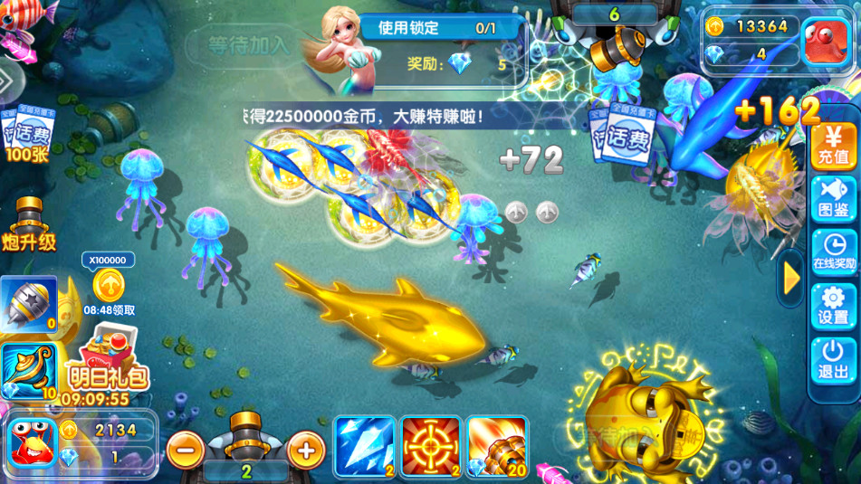 1.强悍捕鱼道具随时拥有,加大火力,让大小鱼群无处可逃。