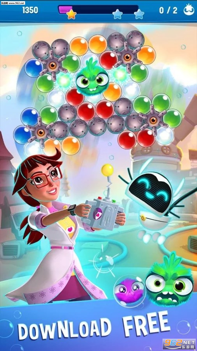 泡泡天才是快速和疯狂的乐趣泡沫射手这是所有关于弹出气泡!玩匹配3个或更多彩色气泡,使他们弹出并清除阶段。帮天才发明家竹篙通过水平前进,力求实现准确击中目标挫败坏人V形的计划!