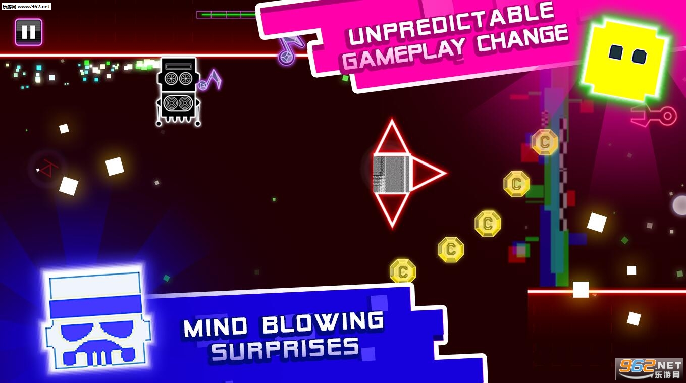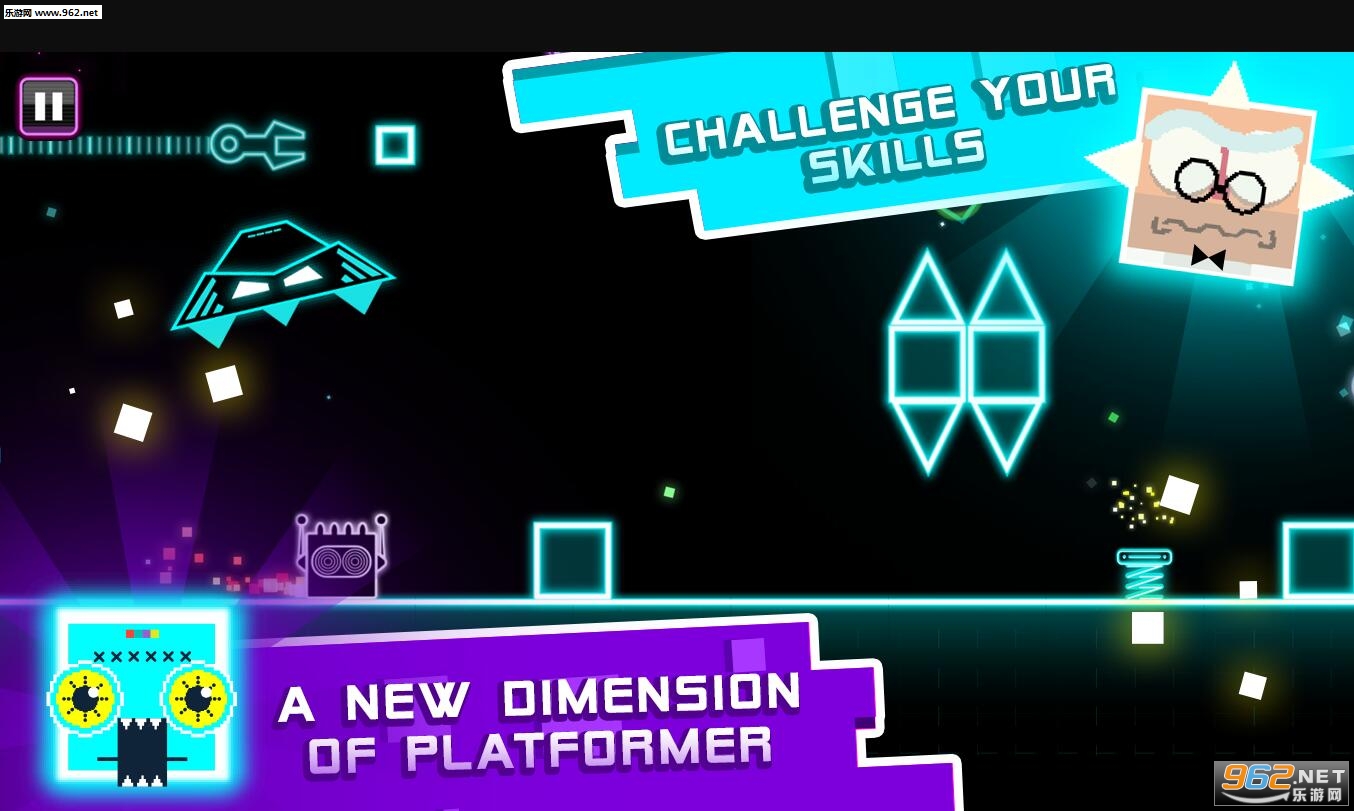 你的目标是跳和闪避障碍物,到达终点并获得吸入小人的飞船,但扭曲来当另一个字符产卵在这给达夫特跳转挑战和娱乐的一个新的层面发挥。