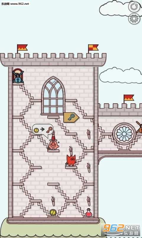在这个神秘的城堡中有着许许多多的楼梯,这些楼梯会随着你的移动而变化。开动脑筋,帮助你控制的勇者寻找正确的路径,逃出这座诡秘的城堡!