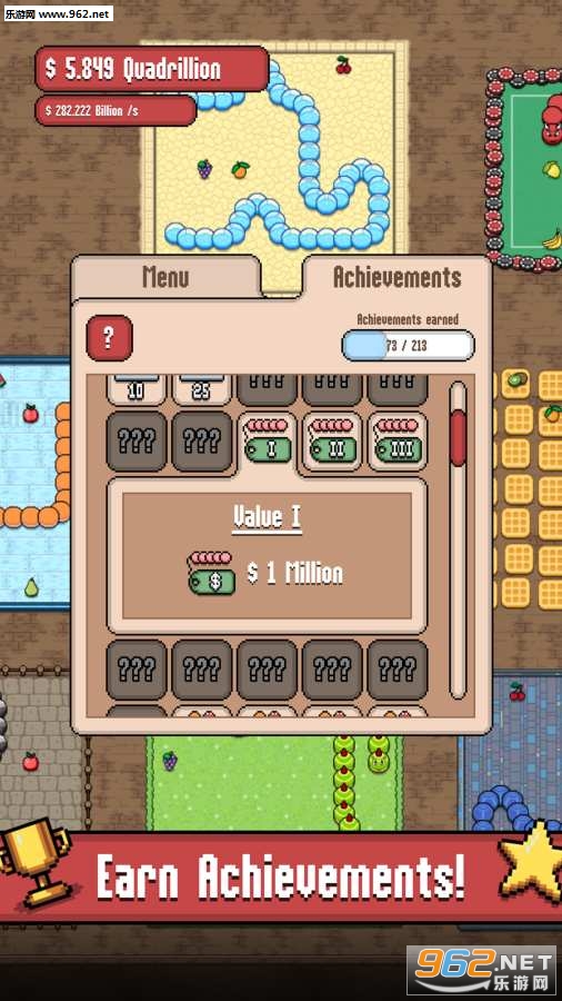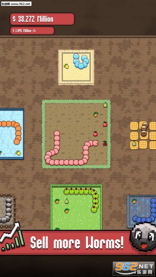 你开始有一只小蠕虫,投喂它一些水果。如果它不能长得更大或者是快要吃掉自己时将被出售。现在,您可以通过购买升级改进您的蠕虫或购买更有价值蠕虫出售。这是你的选择!