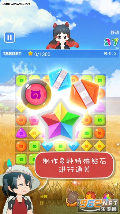 游戏中有着非常多样的宝石需要你通过移动来消除,每一个关卡都会有不同的任务,你要完成了才能进行下一个关卡,玩起来非常的有趣刺激,快来下载体验吧!