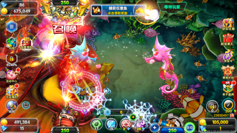 滨海捕鱼精彩来袭!还原经典捕鱼玩法,倍率、比赛战个爽!创新休闲玩法,乐趣十足!