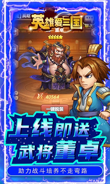 英雄爱三国bt版带领大家体验真正上线即可送董卓让大家培养不走弯路经典三国卡通人物形象塑造其中打造的大型放置类游戏,丰富精彩剧情内容挑战关卡在其中还有海量大乔碎片酷炫装备任君选择还有丰厚奖励拿到手软感兴趣的小伙伴速速前来下载试玩体验起来吧。